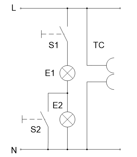 Teniendo el siguiente circuito ¿cómo puedo calcular la intensidad y voltaje de la bombilla 1, teniendo el interruptor s2 abierto y cerrado? (La bo