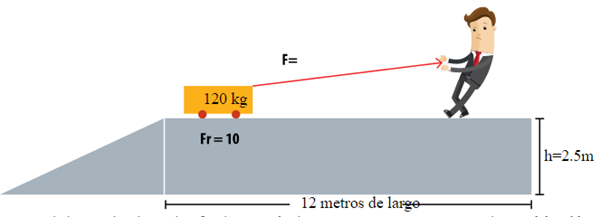a. Representa con un esquema de vectores, las fuerzas del problema planteado. Las fuerzas que actúan son la que realiza la persona para jalar el carrito, el componente en por de esa fuerza y la fuerza de rozamiento.