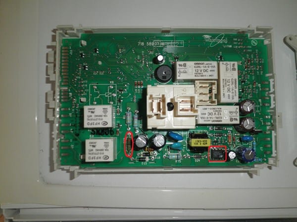 Hola buenas, no se muy bien como va todo esto de comentar es la primera vez que lo hago, pero es que no podía dejar sin decir nada. El que puso la foto de la placa me ah salvado la secadora, sólo me costaron las piezas 4€ ... Ya que me prestaron un soldador y estado... Loco, eres un crack... Ahora intentaré poner las fotos de las piezas. La resistencia es rojo, rojo, negro, dorado... Equivale a 22 om o algo así, con los colores te darán la correcta - Edgardo Huart