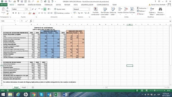 Se solicita determinar el cuadro de Origen y Aplicación y realice el análisis integral de los dos cuadros resultantes,