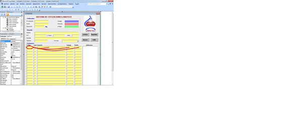 Mi problema es el siguiente: en el Frame "Examenes" (ver imagen) tengo varios TextBox agrupados en 6 columnas identificadas con la etiqueta codigo, cant, examen, copago, part e indicacion respectivamente. La idea es ingresar un código de 4 dígitos en cada uno de los textbox que se agrupan en la columna etiquetada como código, y al hacer Enter este código es buscado y capturado por el textbox, capturando de paso el contenido de los otros textbox adyacentes de la misma fila (la información de captura se extrae de una hoja que funciona como base de datos llamada "examen". La búsqueda la tengo resuelta de dos maneras: