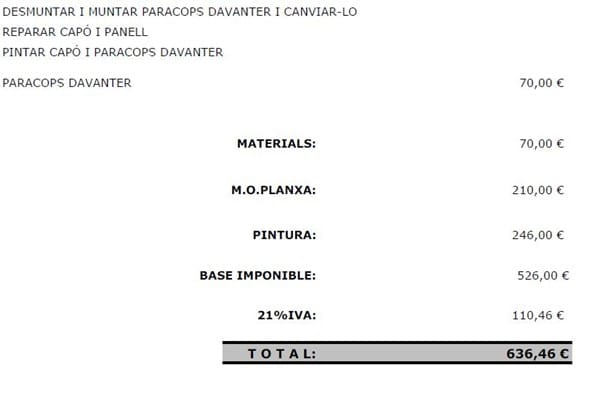 Necesito reparar de chapa y pintura mi coche, un Ford Fiesta del 96 y me dan este presupuesto.