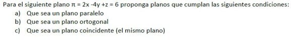 Para el siguiente plano π = 2x 4y z = 6 proponga planos que cumplan las siguientes condiciones: