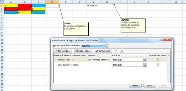 Como hacer para que me muestre los valores de una celda con colores