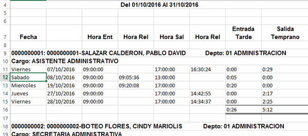 Por lo que, al siguiente mes, "Salazar Calderon" es posible que llegue tarde más veces.