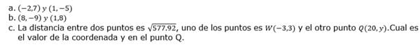 Problema 1. Para los puntos a y b determinar la respectiva distancia euclidiana, para el punto c determinar la coordenada
