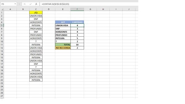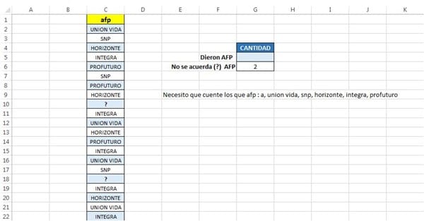 Necesito contar las celdas que tengan nombres de afp como esta indicado en la captura de imagen