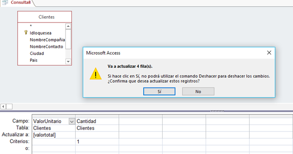 El presente mensaje es para pedir su ayuda con el siguiente caso que tengo en una tabla de valores, en la empresa que trabajo bajo unos planos y los monto en access me di cuenta que la multiplicación de cantidad con valor unitario no coincide con el valor total, como el valor total no se puede alterar por que se descuadra la factura entonces de que modo realizo una consulta donde me iguale el valor total a valor unitario con una cantidad de 1 siempre?, solo a los valores que no coincidan con la multiplicacion por que no todos los registros tiene el mismo problema.