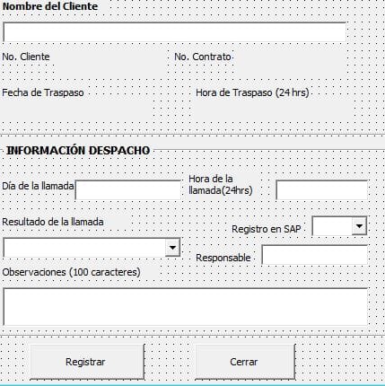 4)Cuando se cierre el formulario y se vuelva a habiliar iniciará en el registro actual por llenar