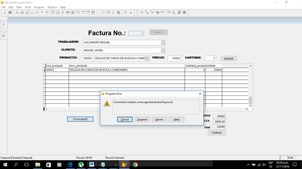 Ahora, respondiendo a la consulta de que al superar una cantidad no permita hacer la compra; pues bien, cuando buscas un artículo ya sea por su nombre o su código habrás localizado el registro que contiene la cantidad en existencia del producto; lo memorizas y al ingresar la cantidad de compra solo lo comparas para saber si es mayor al stock.