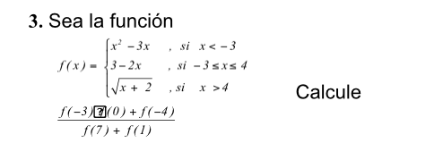 El segundo trozo, para valores de x entre -3 y 4, ambos incluidos