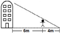 La figura muestra uno de los procedimientos para determinar la altura de un edificio. ¿Cuál es la altura del edificio si sabe que la persona tiene una altura de 2m?
