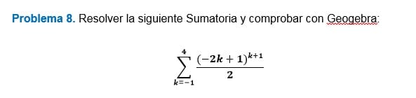 Problema 8. Resolver la siguiente Sumatoria y comprobar con Geogebra: