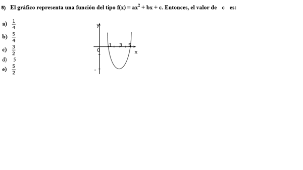 La parábola corta al eje de abscisas en dos puntos, los cuales son:(1; 0) y (5; 0)