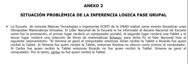 Situación problemática de la inferencia lógica fase grupal