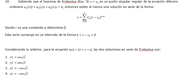 El teorema de Frobenius es el que citaste al comienzo del ejercicio, y nos pide que mediante éste método hallamoe suna solución a la ecuación diferencial,