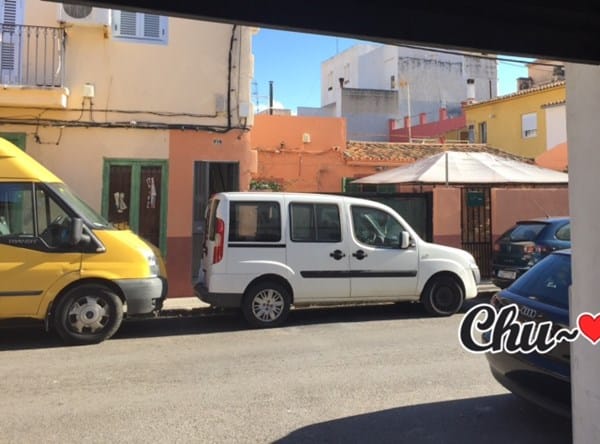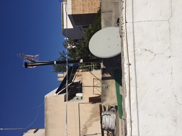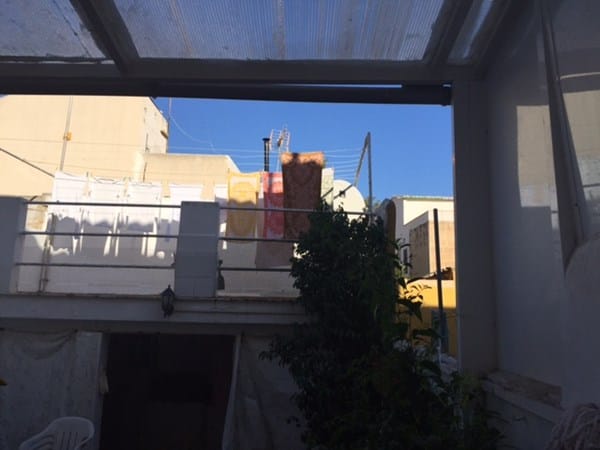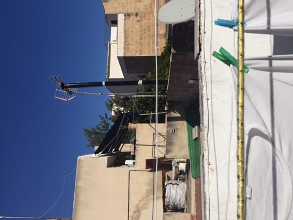 la pared blanca es la terraza de mi hermana, ella vive en un bajo el edificio entero es mas alto que la salida de humos, y el edificio del fondo con el toldo también es mas alto