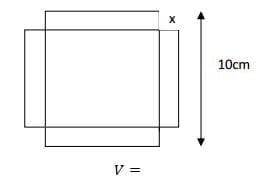 Una caja se construye con una pieza cuadrada de cartón de 10 cm de lado recortando un cuadrado de lado “x” en cada esquina, como se muestra en la siguiente figura, y después doblando las pestañas.