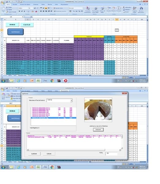 Por otra parte tengo un Userform el cual tiene un combobox1 que clasifica los productos en tres categorías(TORTAS; BEBIDAS;CANAPES), según la columna "H" de la base de datos y en función del valor seleccionado en el combobox1, se agregan las columnas seleccionadas en un listbox1 de 4 columnas.