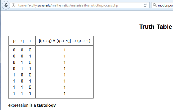 En la ciudad de Pereira se ha creado un buffet de abogados entre cuatro amigos, del cual Juan Arroyo y María Aguirre hacen parte; en cierta ocasión se generó una discordia laboral por diferentes puntos de vista en el proceso de acompañamiento legal a una persona sindicada de varios delitos; Juan ha asumido la defensa de Alberto quien es la fuente de discordia con María. María ha decidido tomar acciones radicales frente a lo ocurrido con Juan: “Si el cliente de Juan gana la apelación, entonces María se retira del buffet de abogados. María se retira del buffet de abogados si y sólo si Alberto el cliente de Juan no es llevado a prisión. Por lo tanto, si el cliente de Juan gana la apelación, entonces no es llevado a prisión”. Determinar cone luso de las dos formas de la tabla de verdad la validez del razonamiento que hace María y hacerlo también con el uso de las leyes de inferencia
