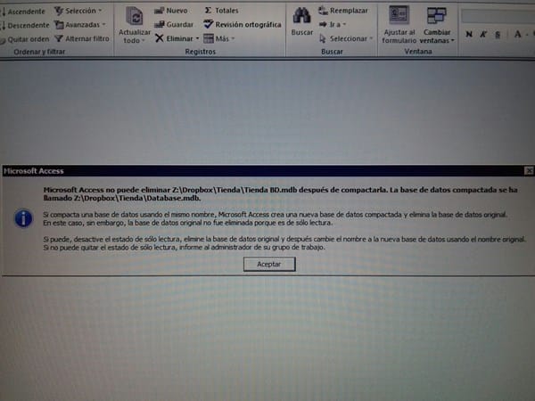 Tengo una base de datos en red, y, de vez en cuando, cuando le da el aire, me sale un fallo (que adjunto en imagen), y me cambia el nombre a database. Mbd.