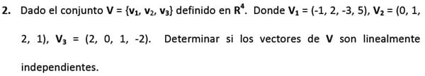 -3=7/2 falso. No se puede construir la combinación lineal, luego son linealmente independientes.