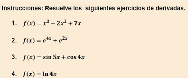 Resuelve los siguientes ejercicios de derivadas.