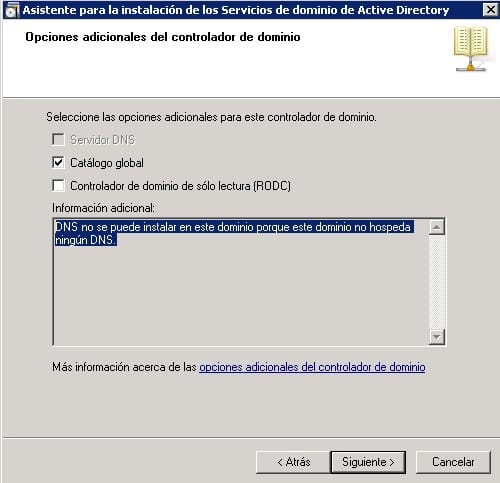 Al tratar de promover un nuevo Controlador de Dominio no agrega el servicio DNS.