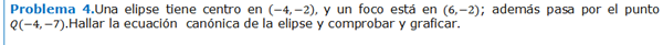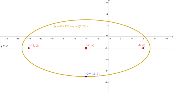Una elipse tiene centro en (-4,-2), y un foco está en (6,-2); además pasa por el punto Q(-4,-7).Hallar la ecuación canónica de