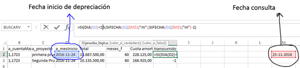 Tengo una fórmula para obtener el tiempo transcurrido de un activo en depreciación. Por un lado tengo la fecha de inicio de depreciación de un activo, y por otro lado la fecha de la consulta.