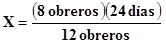 8 bomberos pueden hacer una obra en 24 días. ¿Cuántos días se demoran 12 obreros en hacer la misma obra?