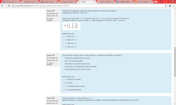 Ayudarme a responder este quiz con única respuesta las pregunta 4 y 5