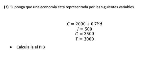 MatemáticasCiencias económicas atom valenz el 30 nov. 16 ¿Cómo puedo hacer para determinar el PIB en la siguiente ecuación de economía? Espero me puedan apoyar con éstas preguntas sobre economía, saludos. Seguir Siguiendo Dejar de seguir