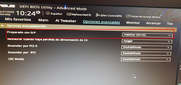 Al apagar el PC se queda encendido todo el tiempo el ratón, ¿hay alguna opción en la BIOS para desactivar esto?