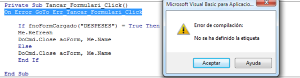 Soy nuevo en esto de la programación y autodidacta. Mis avances son muy lentos. La cuestión es que les quiero decir a Access mediante el editor de visual basic lo siguiente: