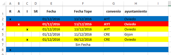 Tengo una hoja de excel donde tengo un campo fecha Tope y quiero al abrir el libro o esa hoja basándome sobre la fecha actual en la que se abre el libro todos los registros que estén a 3 o 5 días de vencer sobre la fecha tope me avise o se filtren para verlos nada más empezar, si eso es complicado crear una columna nueva que cuando cumpla esta condición se coloque en rojo y ponga vencimiento o algo de lo cual a simple vista me de cuenta cuando lo abro ya que tengo muchos registros en la hoja por eso decía que queden filtrados, pero si es necesario programación una solución valida me vale.