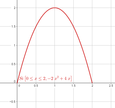 $$\begin{align}&f(x)=-2x^2+4x\end{align}$$Realiza un esbozo de la gráfica de la función y contesta la siguiente pregunta ¿sube indefinidamente el globo? ¿Por qué?