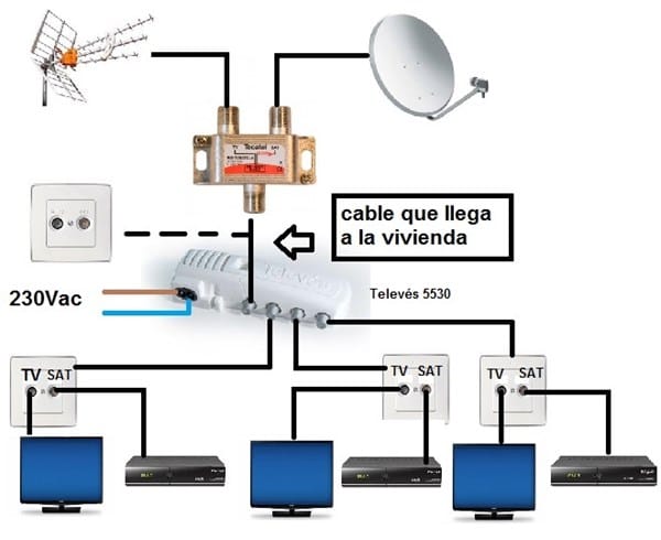 Vivo en un piso (vivienda comunitaria), me llega a mi casa una entrada que tiene satélite y tdt, si enchufo en la de tv la Tele normal se ve ok, si conecto en sat veo con el deco los canales de satélite ok, después de este punto, tengo conectado un amplificador de señal y de ahí a las dos habitaciones de la casa, donde veo tdt ok, ¿qué tengo que hacer para ver sat en el resto de la casa? Si cambio el cable a la salida de sat y me salto el amplificador sigo sin ver sat.