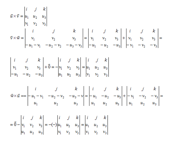 - Sean u, v, w E IR:3 tres vectores tales que u +v+w = O. Demuestre que u x v = v x w = w x u.