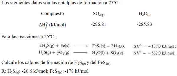 El cálculo de la entalpía de formación del H2S se hace a partir de la entalpía de la reacción dada y de las entalpías de formación del H2O y del SO2:
