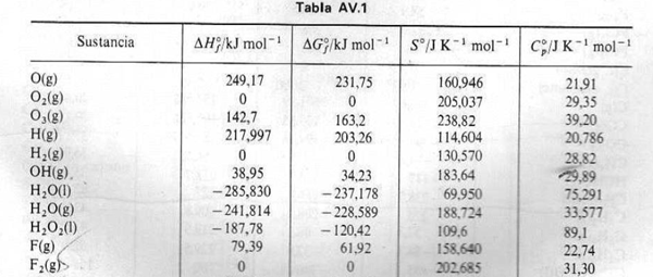 (a) A partir de los datos de la tabla A-V, calcule el calor de vaporización del agua a 25ºC.