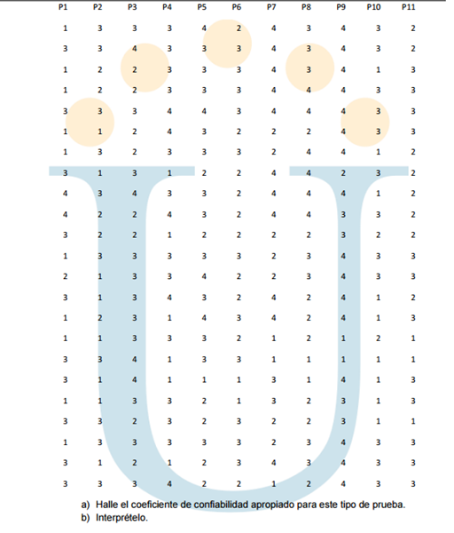 a) Halle el coeficiente de confiabilidad apropiado para este tipo de prueba.