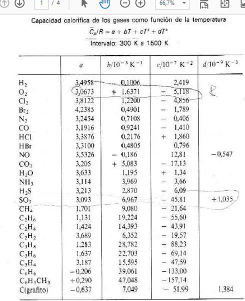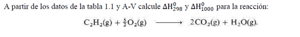 A partir de los datos de la tabla 1.1 y A-V calcule ΔH2980 y ΔH10000 para la reacción: