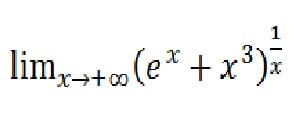 $$\begin{align}&ln(y)=\frac{1}{x}ln\left(e^{x}+x^{3}\right)=\frac{ln(e^x+x^3)}{x}\\&\end{align}$$Entonces podemos calcular el límite de ésto,