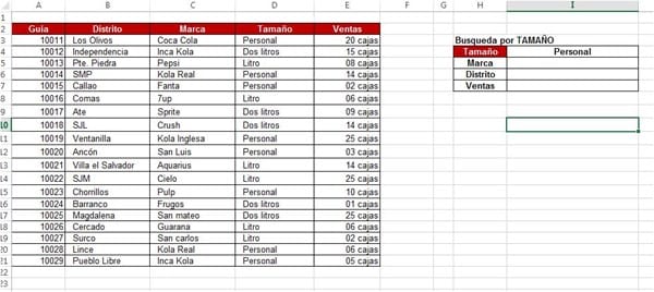 Necesito que me busque según especificación del cuadro, he estado intentando pero para el tamaño personal se repite varias veces y necesito que me busque en todas