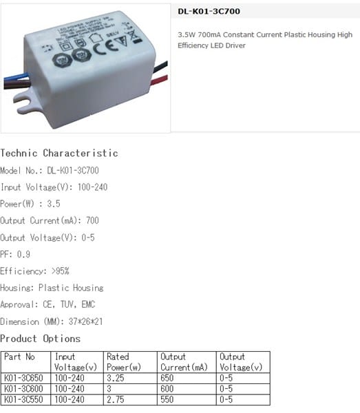 Estoy buscando un driver para una lámpara LED de entrada 220 V y salida 5V 3,5W 700mA, y lo más parecido que encontré es una pieza para la placa madre del PC con las mismas características de input y output, ¿me valdrá para el LED?. Adjunto foto del driver: