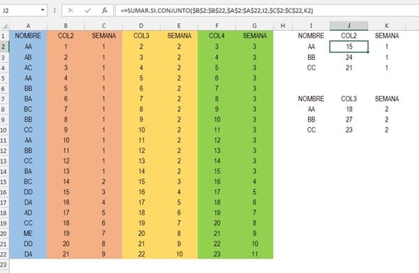 Función se encarga de poner el Numero 1 y 2 de semana del gráfico anexado en las celdas k2,8 y sucesivamente.