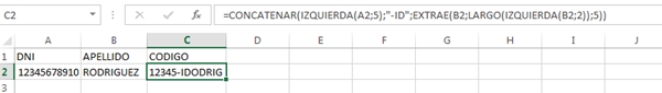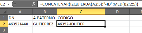 - Genere el código utilizando los siguientes elementos: Los 5 primeros caracteres del DNI, un guión, las letras "ID" Y DEL SEGUNDO AL SEXTO CARÁCTER DEL A. PATERNO.