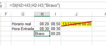 Tengo un inconveniente con el calculo de horas en H3 tengo el horario de entrada que es 08:30:00am