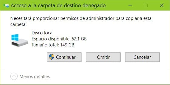 Por ejemplo voy a vaciar la papelera o, a copiar algo a C: y me dice que necesito permisos de administrador. Le doy a Continuar y ya está pero es una molestia que salga la ventanita tantas veces.